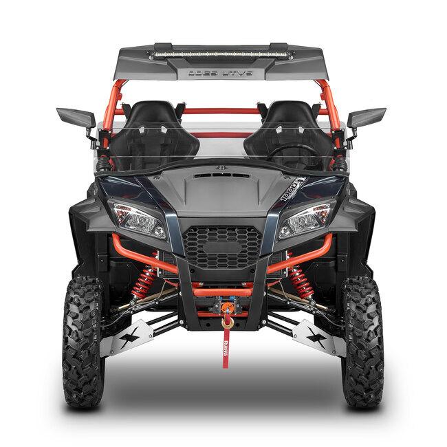 Workcross 1000CC-6 HVAC комплектуется множеством полезных опций, включая электроусилитель руля, светодиодную оптику, звуковой сигнал, сигналы поворота, зеркала заднего вида, бардачок и розетки 12 Вольт. Это делает его готовым к работе и отдыху "из коробки".